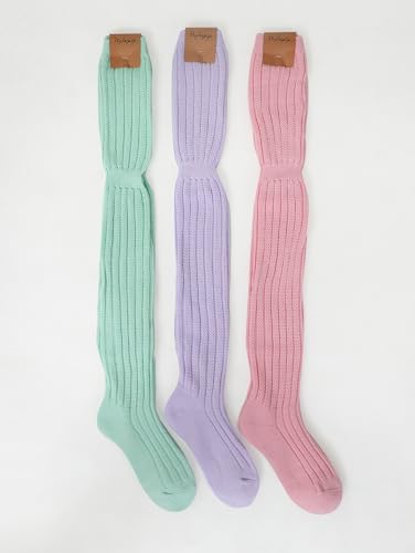 • SLOUCH TOP OVER THE KNEE SOCKS - Since the top of the socks can be rolled down to your knees, you can use these features to create two styles. These are very good for use because it is composed of the highest level of preference colors such as ivory, gray, and black. You can match long boots or ankle boots and layered on leggings or skinny jeans. If you choose these socks, you are already a smart dresser - Slouch gentle Knit Socks. PACKAGE INCLUDE - 3 Pairs (Lt Pink, Mint ,Lavender)