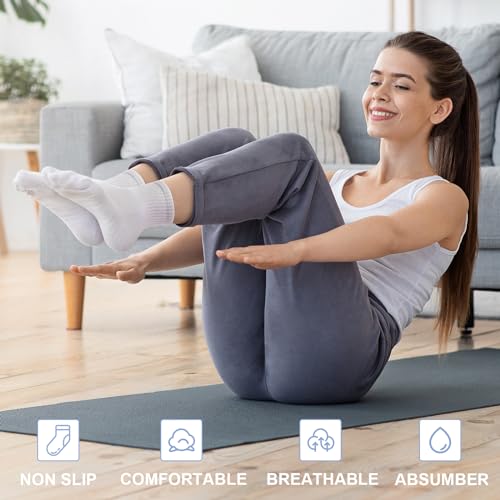 Women's White Crew Socks, 5 Pairs Lightweight Comfy Women Athletic Cushioned Running Low Cut Socks