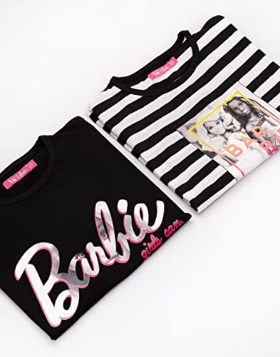 More information about Barbie T-Shirt 2 Pack Girls Kids Doll Logo Striped Black & White Top 7-8 Years