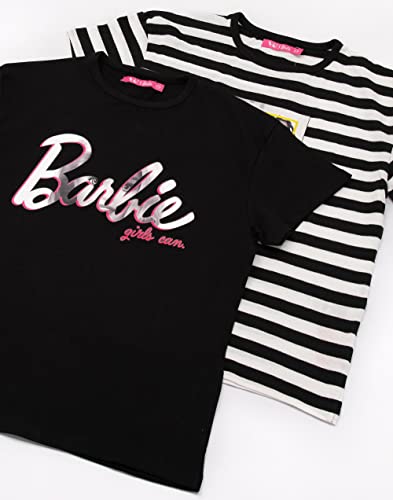 trending ! Barbie T-Shirt 2 Pack Girls Kids Doll Logo Striped Black & White Top 7-8 Years