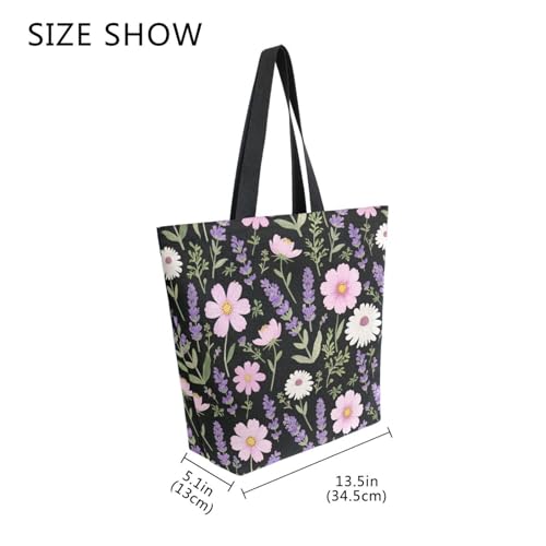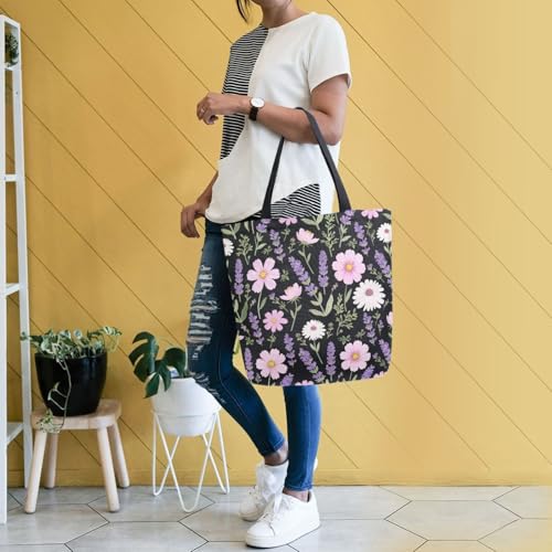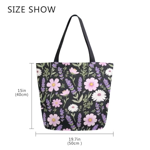 Why Choose Extra Large Shoulder Tote Bag for Beach Travel Weekender Gym Lavender Pink Flower Pattern Reusable Grocery Canvas Shopping Bag?