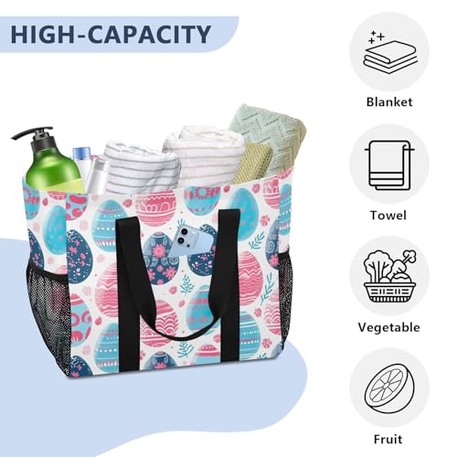 trending ! YETTASBIN Easter Egg Large Foldable Travel Tote Bag, Lightweight Waterproof Swim Pool Bag with Handles & Pocket for Beach Outdoor, Reusable Grocery Bag for Kitchen, Shopping