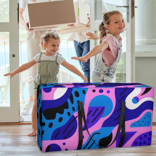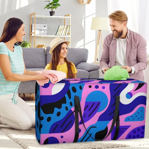 trending ! Abstract Purple Geometry Extra Large Moving Bags Heavy Duty Storage Bags Cloth Wrap Around Handles Double Zipper Reusable functional Foldable Storage Tote for Travel Camping Space preserve