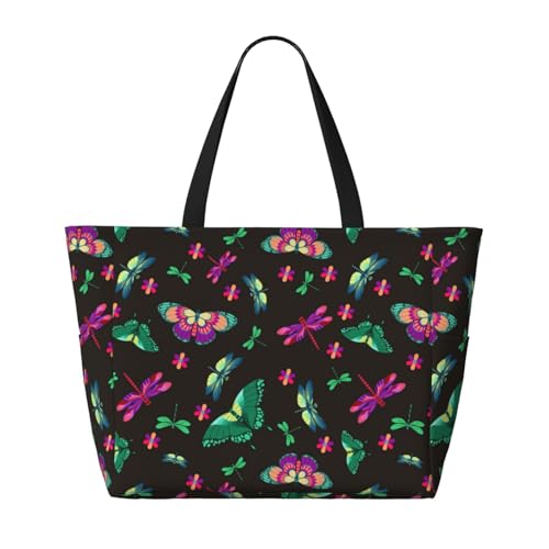 trending ! Purple Green Dragonfly Butterfly Large Beach Bag Waterproof Sandproof Swim Tote Pool Bag For Women With Zipper