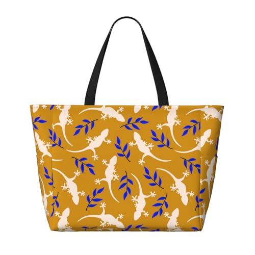 Fabric type: PolyesterMaterial: Made Of Polyester, Our White Gecko Lizard Blue Leaves Beach Bag Withstands Water With Its Honeycomb Weave Design, faultless For Any Outing.Large Capacity Beach Bag:Beach Bag Size Is 17.7*15*6.7 Inches And Capacity Is 28l.Convenient Storage: Crafted With A Total Of 7 Pockets - With Inner, Side, And Front Pockets - Our Beach Bags For Women Make Room For Various Items That Complements Your Beach Day: Be It Phones, Keys, Laptops, Headphones, Clothing, Glasses, Water Bottles, Umbrellas, And Much More.Multipurpose Tote Bag:Versatile And Portable,This Beach Bag Suitable For Any Use! Perfect For Carrying When You Step Out For Beach, Travel, Weekender, Swimming, Pool, Gym, Shopping, It Folded Up Small And Lightweight.Waterproof Sandproof Beach Tote Bag: This Beach Tote Bag, Which Is Waterproof, Sandproof, Easy To Clean, Sand Shakes Right Off Instead Of Carrying It Home With You. Perfect for everyday use. superior materials and excellent craftsmanship ensure long-lasting durability.