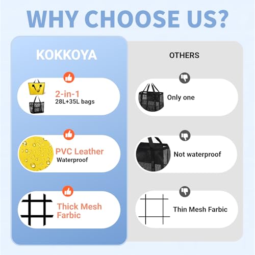 trending ! Double Large Mesh Beach Bag Tote Waterproof Sandproof with Pocket for Women Men Beach Swim Pool Separable 35L&28L