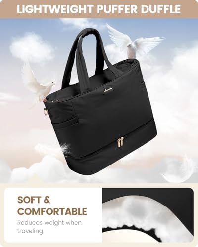 trending ! LOVEVOOK Travel Duffle Bag, Puffer Weekender Bags for Women with Shoe Compartment, Carry On Overnight Hospital Bag, Gym Tote