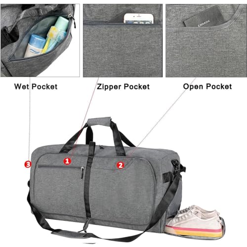 Travel Duffle Bag for Men, Extra Large Foldable Duffel Bags for Traveling with Shoes & Wet Compartment Waterproof Weekender Gym Bag for Men Women(150LDarkgrey)