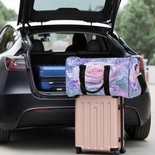 Rose Gypsophila Flower Travel Duffel Bag Sports Tote Gym Bag Waterproof Tear-Resistant Carry On Overnight Bag Foldable Weekender Bag for Gym Travel Getaway Beach Sports