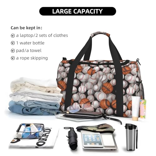 Baseball Basketball Football Hockey Print Daily essentials Large Capacity Hand Carry Bag for Weekend Getaways style Bags