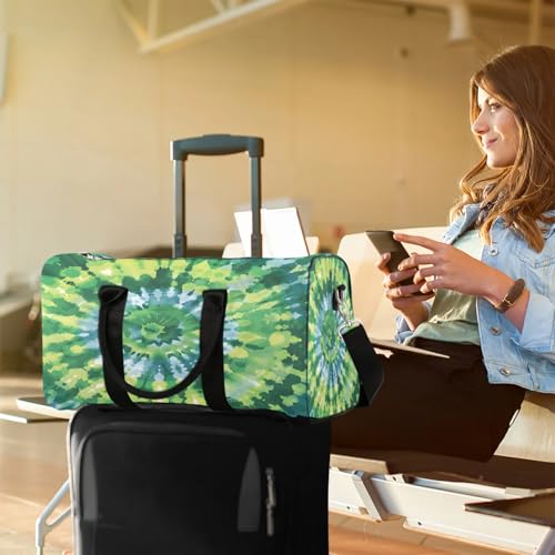 trending ! Tie Dye Green Travel Duffle Bag, Sports Gym Bags for Women Men, Carry On Weekender Overnight Workout Airplane Trips Bag