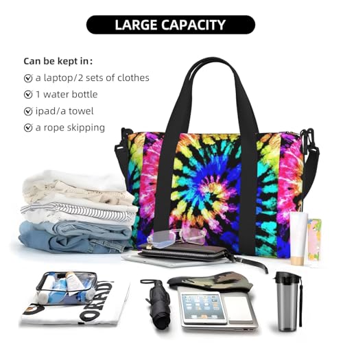 LARGE SIZE : Exotic Tribe Tie Dye Style print Hand Travel Bag, Measuring 16.1 inches / 41 cm L x 5.9 inches / 15 cm W x 11.4 inches / 29 cm H, this bag is large enough to hold the essentials for a 3-5 day tripFabric : This Hand Travel Bag Is Made Of Oxford Fabric, Which Is Lightweight, Sturdy And Keep Your Belongings DryMulti-Purpose : This Hand Travel Bag Is Fit For Travel, Weekend, Overnight Stays, Sports Activities, Tennis, Fishing And Many Outdoor Activities. And Also Be Used As Sports And Fitness Bags, Travel Luggage Bags, Travel Bags, Handbags, Weekend Bags, Personal Belongings BagsProduct Performance : This Travel Bag Is Big Enough To Make It Easy To Store Your Clothes, Cosmetics, Shoes, Laptops, Ipads, Headphones, U-Shaped Pillows And Other Items. It Is Fit For Air Travel Handbags, We Can Carry Them With Us And Place Them Under Your Seat Or On Luggage Rack According To Its SizeAccessory Structure : 1 Main Pocket, Double Zipper Opening And Closing, 2 Patch Pockets And 1 Zipper Pocket Inside, Equipped With An Adjustable Shoulder Strap, Adjustable Range Between 70-125 Cm, Its Hand Strap Length Is About 60 Cm. There Are Reinforced Webbing And Buckle Connection On Both Sides faultless for everyday use. superior materials and excellent craftsmanship ensure long-lasting durability.