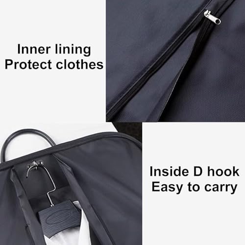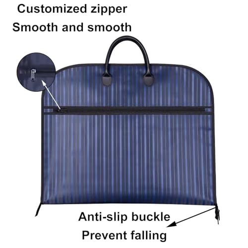 Durable Striped Oxford Cloth: Crafted from high-quality fiber weaving, this product offers excellent resistance to high-intensity pulling. It is breathable, dustproof, and waterproof, ensuring long-lasting performance. The material prevents rainwater penetration and reduces dust accumulation, making it easy to clean and maintain for up to 20 years. Perfect for various applications.Convenient D-Shaped Hook: Our Suit Bag features a built-in D-shaped hook for effortless hanging. The spacious interior allows for complete storage of your suits, enhancing organization and aesthetics. The handbag conveniently folds at the back, making it easy to carry for all your travel needs. Perfect for keeping your garments wrinkle-free and chic on the go.Versatile Usage: This lightweight Garment Rack is perfect for Business Trips and Travel. Once unfolded, it easily hangs at home for convenient storage. Ideal for organizing thin Clothing items such as Shirts, Suits, Jackets, and Skirts. Keep your wardrobe neat and accessible with this practical solution for your daily needs.Foldable: This suit bag can be folded and zipped up to become a handbag, it is equipped with a soft handle for easy carrying, the outer bag has a large capacity and can hold some papers, ties, shirts, socks and other itemsMultiple Usage Scenarios: The easy-to-carry feature makes it very suitable for business trips and travel, after unfolding, it can be hung at home for storage, which is very convenient for thin clothes such as shirts, suits, jackets, skirts, etc Perfect for everyday use. supreme materials and excellent craftsmanship ensure long-lasting durability.
