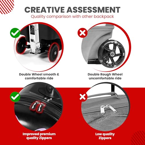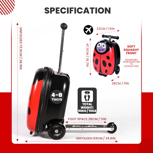 Ladybug Kids Scooter Suitcase - Folding Kids Luggage with Wheels - Multifunctional Ride on Luggage Travel suitcase with powerful Grip, effortless Locks and Zippers – Capacity to Hold 110LB