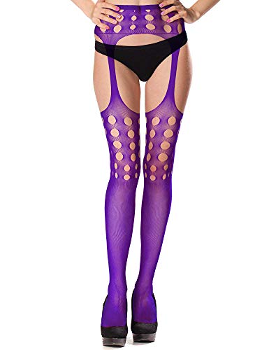 trending ! Skylety 6 Pairs Women Suspender Pantyhose Stockings Tights Stretchy High Stockings for Dress up Favors (Black, Purple, Royal Blue, Red, Rosy, White,Medium - Large)