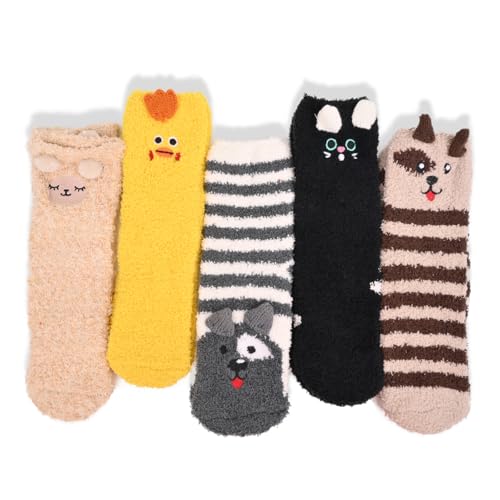 • The Ultimate Giftable Set: Delight your loved ones with our 5-pair bundle of cozy, fluffy socks - the flawless present for any occasion! Whether you're searching for a thoughtful Christmas gift, a fun White Elephant exchange item, a birthday surprise, this set has you covered. The playful animal design also makes them a whimsical stocking stuffer, Valentine's Day gift, or even a Halloween treat. Give the gift of coziness this year with our delightful 5-pair sock bundle!