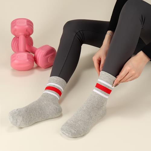 Ultrafun 5 Pairs Womens Crew Socks Cotton Retro Striped Athletic Sports Casual Quarter Socks