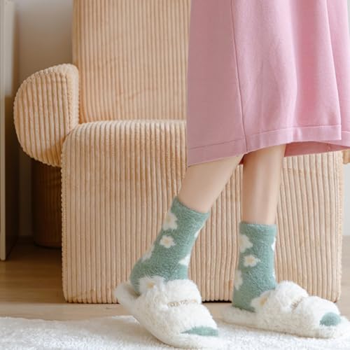 supple Cute Fuzzy Socks for Women, Winter Cozy Casual Fluffy Sock Thickened Slipper Socks for Home, Outside, 5 Pairs, Size 5-9