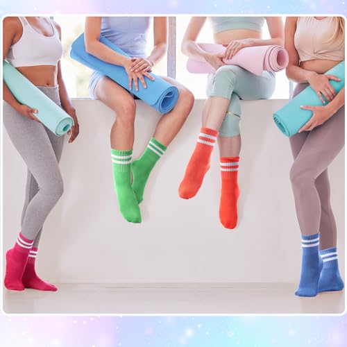 15 Pairs Colorful Pilates Socks with Grips for Women Yoga Socks with Grips Classical White Stripe Non Skid Athletic Crew Sticky Sock for Workout Hospital