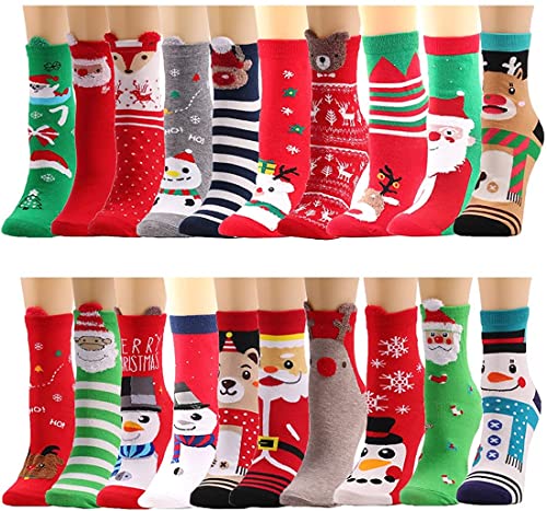 MarJunSep 20 Pairs Christmas Socks for Big Kids Women Holiday Xmas Socks Gifts Colorful Novelty Funny Christmas Cotton Knit Socks Children