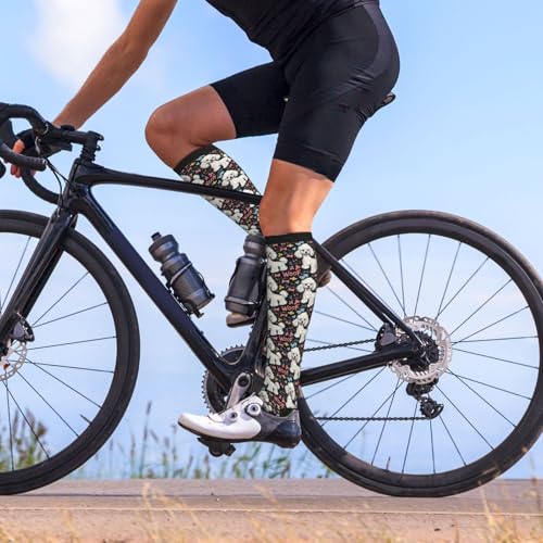 Compression Socks for Women Men, Cute White Poodle Print 15-20 mmHg Compression Stockings Support Socks for Nurses Ladies Running Travel Athletic Hiking