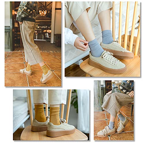 Fabric type: CottonCare instructions: Machine WashOrigin: ImportedPattern: Solid✔78% combed Cotton spinning.✔ Material: It's made of high end combed cotton spinning. Soft and comfortable (exercise essential), sweat absorption. A slippery feeling, ultimate flexibility, allowing you to enjoy a refreshing feeling at all times. It is the role of health care, durable wear.✔Design:Stylish and elegant Japanese-style pure color socks, candy color gives you a girly heart forever, simple and elegant. The curled design is more playful and cute.✔Quantity and Size: 11 pairs(1 pairs each colour), These socks comes a standard US size that fit shoe size 5 - 9.5. They are crew cut socks with most common length of socks.✔Casual socks, easy to put on. A Little Thin, but it's suitable for all season or home wear. Perfect for everyday use. supreme materials and excellent craftsmanship ensure long-lasting durability.