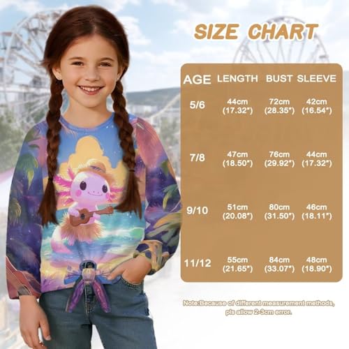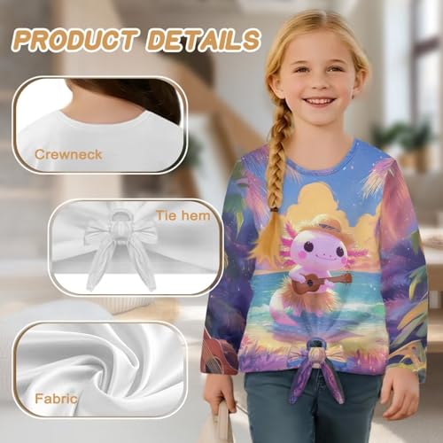 Xoenoiee Girls Casual T-Shirt Crew Neck Tunic Tops Axolotl Print Long Sleeve Loose Fit supple Blouse Tie-Hem Tees Size 5-12