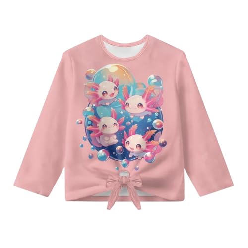 trending ! Loose Girls Long Sleeve T-Shirt,Crew Neck Girls Shirt,Kids Front Knot Tunic Tops for School