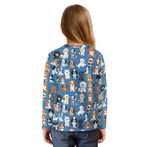 Animal Shirt for Girls 5-12 Years Long Sleeve Tie Shirts Casual Crewneck Pullover Tops