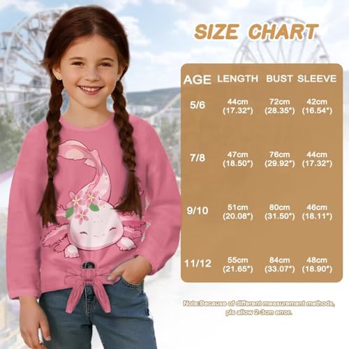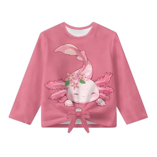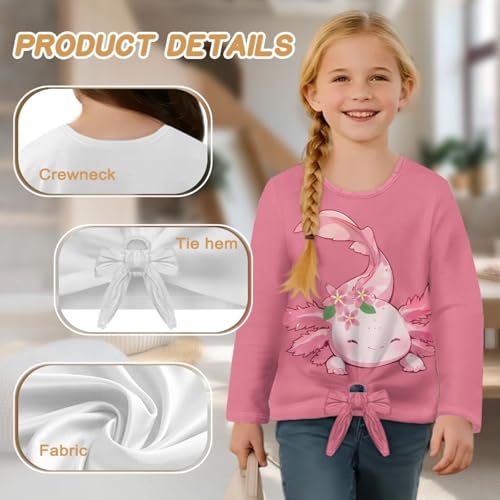 WELLFLYHOM Axolotl Long Sleeve Shirt 5-12T Girls Graphic T-shirt Front Knot Pullover Top Casual Crewneck Tees