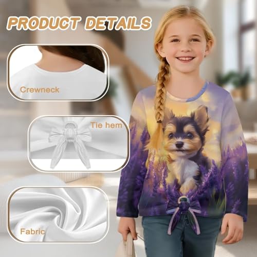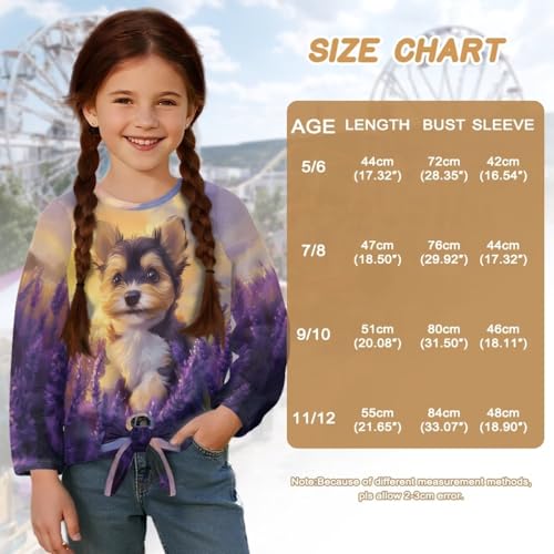Fabric type: 94% polyester 6%spandexCare instructions: Machine WashOrigin: ImportedClosure type: Pull On[Breathable Fabric]: Our girls long sleeve shirts are crafted from 94% premium polyester + 6% spandex for cloud-like comfort! The stretchy material moves with your child’s play – whether they’re at school, park adventures, or family trips. Gentle on sensitive skin yet solid for back to school outfits, this top wicks moisture away to keep little ones cozy all day[Tie-Front Design]: Upgrade your daughter’s girls spring outfits with the sweet bow-tie detail! The adjustable front knots allow customized fit while the round neckline prevents choking. Unlike stiff uniforms, our flowy sleeves offer full mobility for playground races or art classes[Trendy Prints]:From watercolor to leopard spots, our girls graphic tees feature exclusive artwork loved by ages 5-12! Vibrant digital prints resist cracking after 50+ washes. Each design tells a story – great for show-and-tell days or making new friends[Versatile Styling]: Transition effortlessly from back to school outfits to weekend fun! Pair with skirts, shorts or pants for classroom-ready looks. The slim (not tight!) cut flatters all body types, suitable for party, athletic, casual, outdoor play, travel, school, holiday[Friendly Care]: No special handling needed! Hand washable or machine washable, do not soak for a long time, do not bleach, and the temperature of the washing liquid should not exceed 45ºC, tumble dry low or air-dry overnight Perfect for everyday use. premium materials and excellent craftsmanship ensure long-lasting durability.