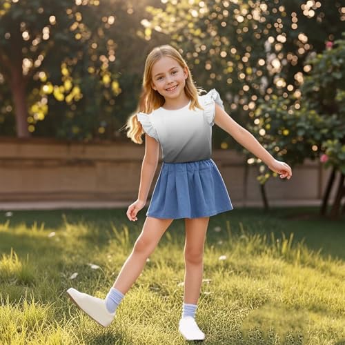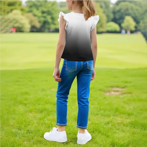 trending ! Girls Gradient Ruffle Flutter Sleeve T-Shirts Loose Crewneck Cute Summer Tops Casual Tees for Kids 3-15 Years