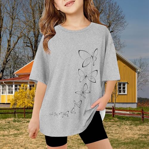 Girls Short Sleeve T-Shirts Toddler Graphic Butterfly Print Tee Kids Crew Neck Loose Fit Top Summer Blouse Casual Outfit