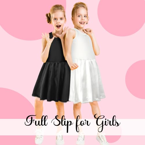 Toulite 2 Pcs Girls Slips for Under Dresses White and Black Full Slip for Kids Knee Length Cami Slip Lace Trim