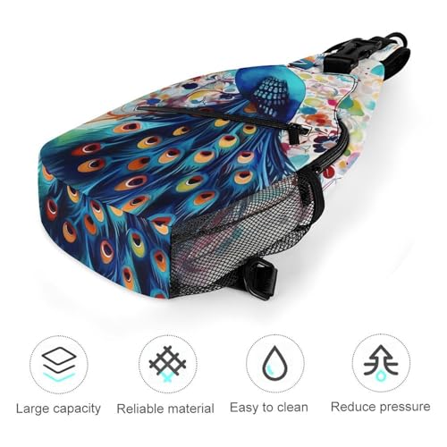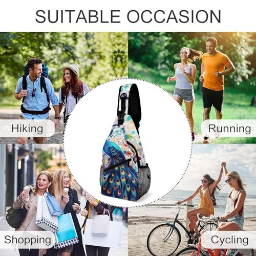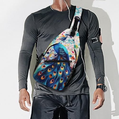 Color Peacock Sling Bag for Men Women - Adjustable Crossbody Chest Backpack, 15" Travel Hiking Fanny Pack