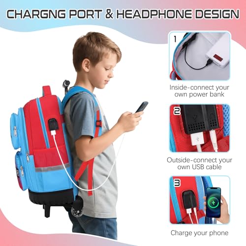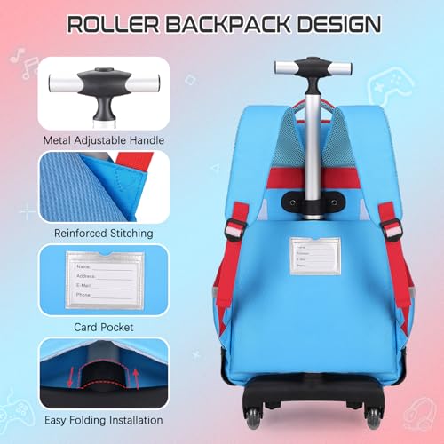 More information about Rolling Backpack for Boys, 3 PCS Gamer Boy Backpack Set with Lunch Box & Pencil Pouch, Roller Wheels School bag for Boys Kids Teens, Elementary Middle School, Kids Bookbag Casual Daypack