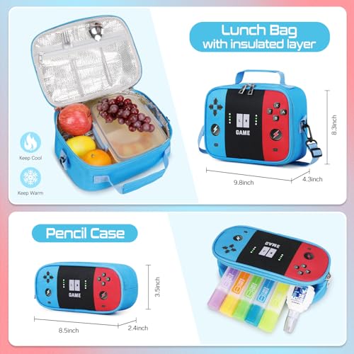 • 【Ideal Gift For Boys】This boys 3-in-1 game backpack for teen set includes a book bag, lunch bag and pencil case, with ergonomic design and cool patterns, both practical and exquisite, ideal gift for kids back to school, birthday, Christmas and other festivals. Suitable for campus, travel, outdoor and other occasions, keep your child's belongings organized. if you have any questions, please feel at no charge to contact us, we will provide you with satisfactory solutions.