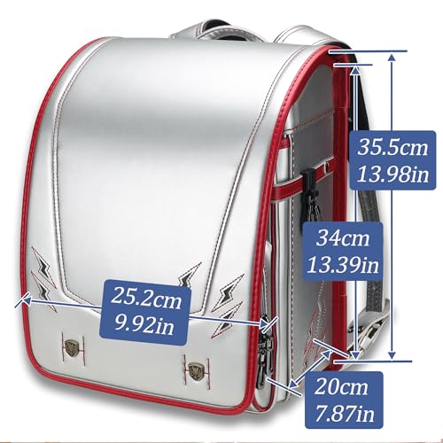 IwaiLoft Ransel Randoseru Backpack with Automatic Satchel for Boys, Japanese School Bag Embroidery PU Bookbag for Men Male (Lightning Silver)