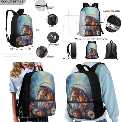 trending ! Daisy Horse Backpack for Girls 4-6 Dreamcatcher Bookbag with Zipper Pocket PU Leather Bookmarks Set of 2 Lightweight School Bag for Travel Outdoor