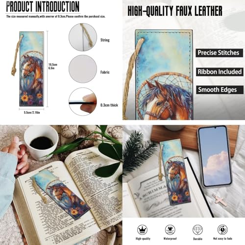 More information about Daisy Horse Backpack for Girls 4-6 Dreamcatcher Bookbag with Zipper Pocket PU Leather Bookmarks Set of 2 Lightweight School Bag for Travel Outdoor
