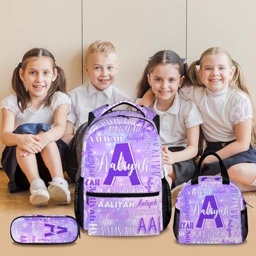 trending ! Backpack for Kids Girls, Set of 3 Personalized Name Bookbag for School, 17 Inch Lightweight Custom Backpacks for Kindergarten Elementary Primary Middle College