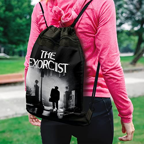 LOGOVISION The Exorcist Logo And Silhouette Drawstring Backpack Sports Bag Sackpack 17" x 13", impeccable for Gym, Yoga or Practice