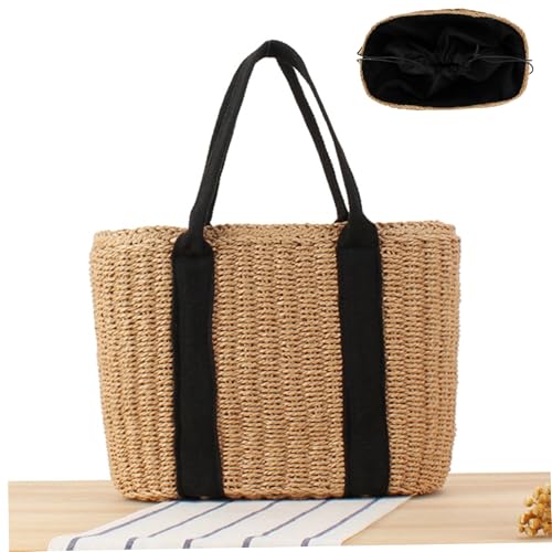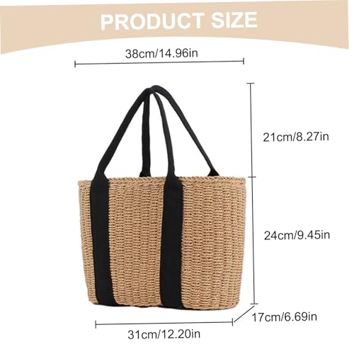 Quality Material: Made from quality paper rope material with a polyester cotton lining, this straw bag is wear-resistant and long-lasting. It can withstand the wear and tear of regular use, making it suitable for summer beach travel and holiday.Tote or Shoulder Bag: This straw bag can be used as a tote or shoulder bag, making it a versatile accessory for any occasion. The strap is about 21cm/8.27inch, making it comfortable to carry on your shoulder or in your hand.Wide Fitting: This straw bag is lightweight and portable, making it easy to carry around during your summer travels. It is perfect for beach trips, picnics, and other outdoor activities, providing a sophisticated and practical solution for carrying your essentials.Casual and Minimalist: This straw bag features a casual and minimalist style with woven design that is perfect for women who want to add a touch of elegance to their summer outfits. The natural texture adds a rustic charm to the bag, making it a versatile accessory for any occasion.Large Capacity: With a bottom size of about 31x17/12.20x6.69inch, height of about 24cm/9.45inch, and top size of about 42cm/16.54inch, this straw bag has a large capacity that can accommodate all your essentials. It is perfect for carrying your beach towels, sunscreen, and other summer essentials. Perfect for everyday use. superior materials and excellent craftsmanship ensure long-lasting durability.