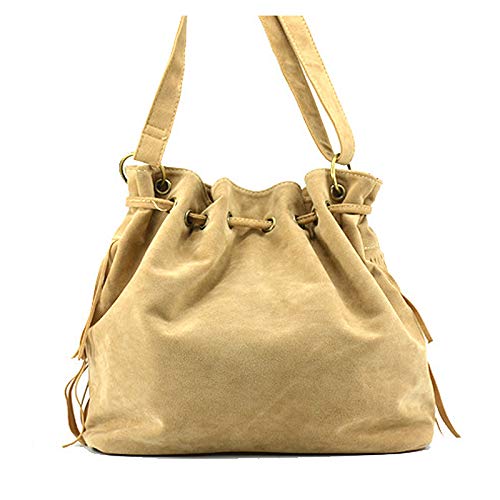 More information about CLARA Women Faux Suede Tassel Fringe Bucket Bag Hippie Shoulder Bag Crossbody Bag
