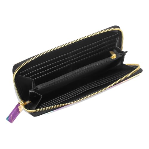 Long Wallets Leather Bifold Wallet for Women Marble Purple Gold with Zipper Credit Card Holder Large Capacity