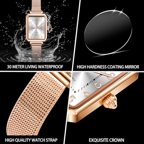 • 【superb Dainty Dial】: Taxau luxury fashion watches for women features square rose gold case, a dainty navy blue crystal face with arabic numeral dial scale . The present-day, elegant, simple women's wrist watch is perfect for minimalist