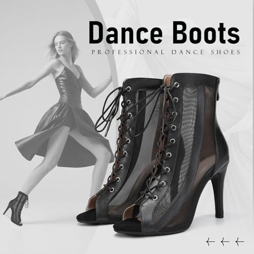 • Dance Heels for Women Design: traditional open toe ankle dance boots with cross lace design, freely adjustable width according to foot width. The zipper is cleverly designed at the back of the boots for simple on and off.