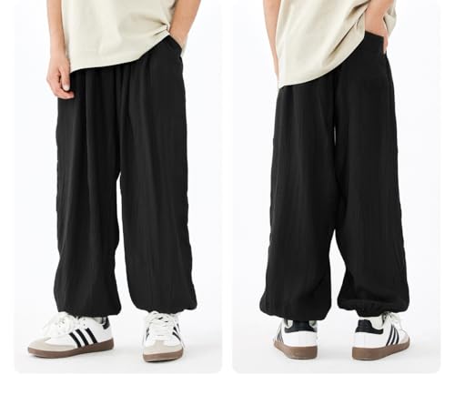 trending ! Irsutey Boys and Girls Solid Color Elastic Waist Thin Leg Tight Pants Summer Loose Breathable Casual Pants with Pocket