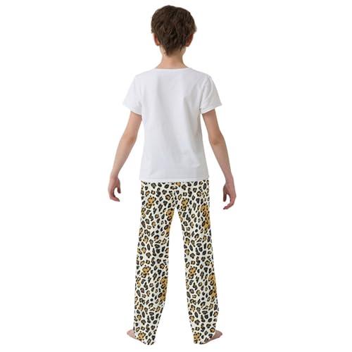 trending ! ZZKKO Leopard Pattern Yellow Brown Boys Pants for Kids Jogger Pants with Pockets S
