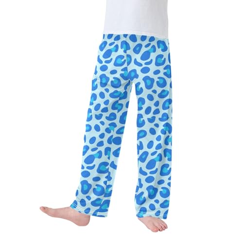 Pajama Pants Long Track Pants Light Blue Leopard Print Sweatpants Athletic for 6-14 Years